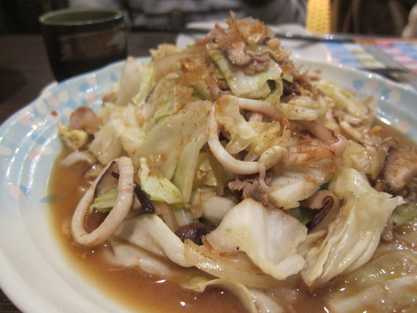 野菜炒高麗菜($130),高麗菜脆甜,加上軟絲Q透,搭配香醇沙茶醬有小品的味道,穿插在各樣美食當中很適合。