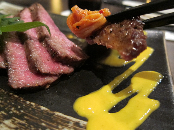 牛肉(忘記價格...),搭配芥末與韓式泡菜的鮮嫩牛肉,幾乎可以與當年日韓世界杯的mix版本相提並論,牛肉非常的嫩,讓我們毫不考慮多點一盤,或許可以考慮五分熟試看看。