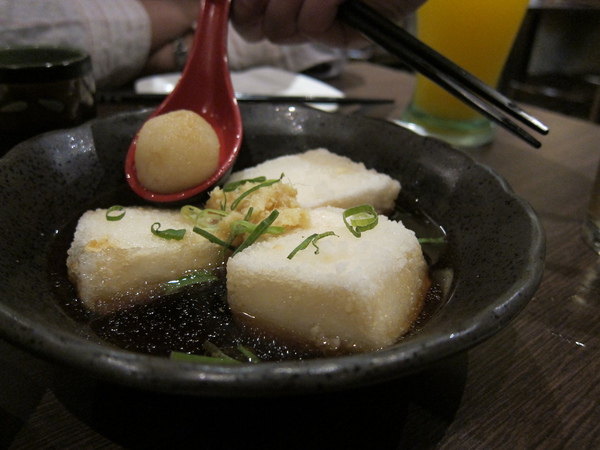 綜合串燒($240)、揚出豆腐($80),以前吃的揚出豆腐表皮都會炸過脆脆的口感,這邊的卻是QQ可以拉的彈性感,和一般的不太一樣。