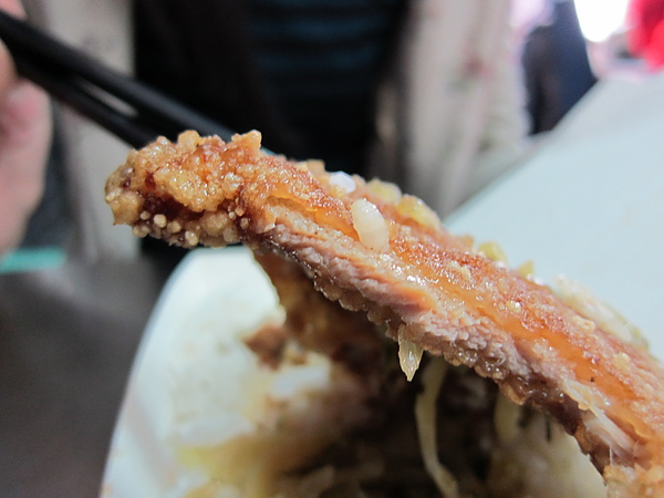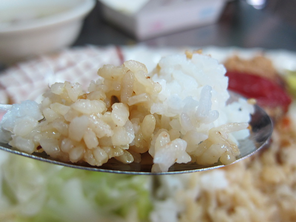 ▲排骨屬於濕潤型,不像新百齡那種,比較像一味珍,阿英的白飯加上滷汁很對味,白飯跟排骨一樣都很稠,飯沒有粒粒分明的感覺,而是一挖起來就是一大團。