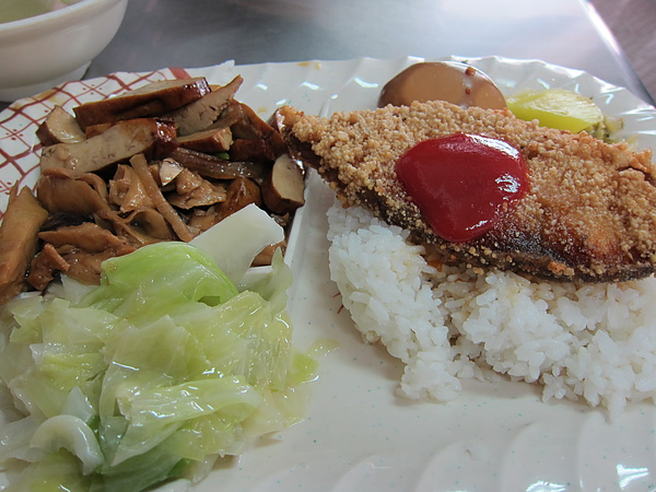 ▲魚排特餐($85),魚排飯加三樣菜,搭配一碗湯,小菜有點油,但是魚排酥酥的,很好吃