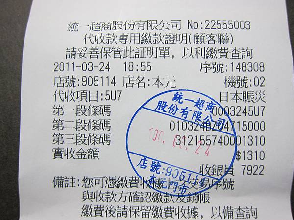 已經於2011/3/24利用ibon捐款,感謝台中童先生的愛心。