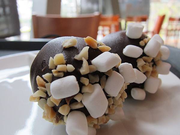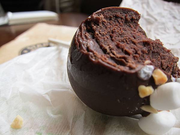 ▲搖滾甜心棒,棉花糖黏在外面與黑黑巧克力形成有趣的對比,搭配點綴的杏仁角微妙層次在口中很搖滾。
