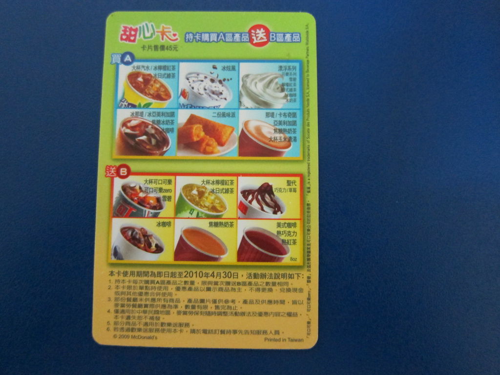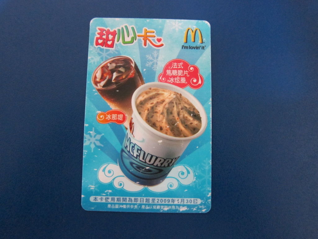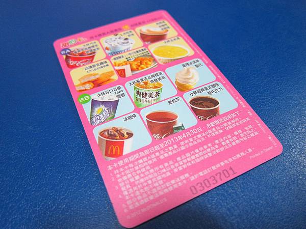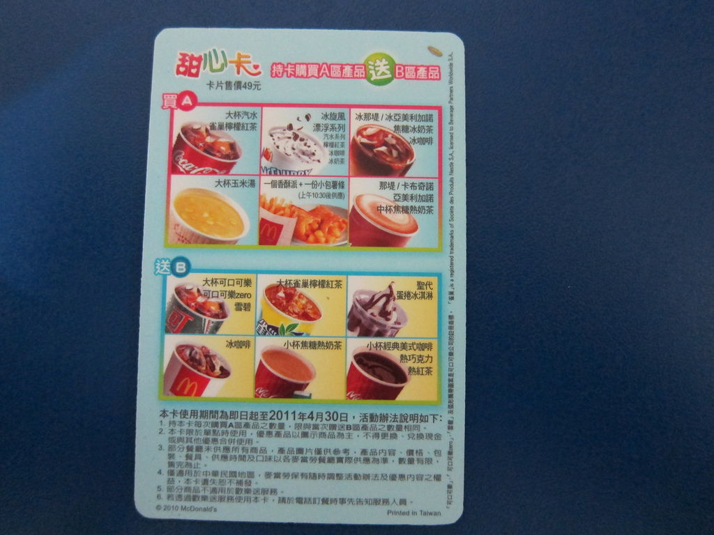 ▲2011甜心卡出現薯條與更加豐富的圖案,飲料部分已經把綠茶拿掉了。