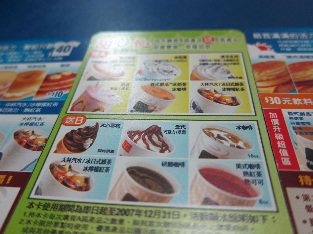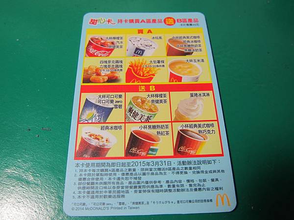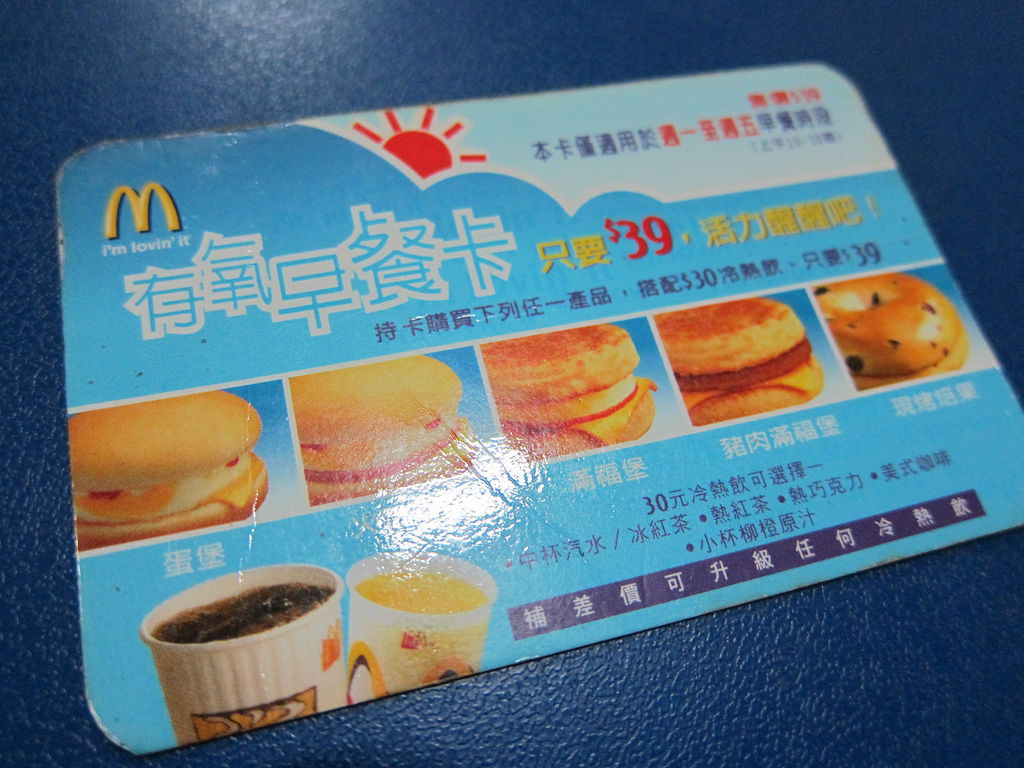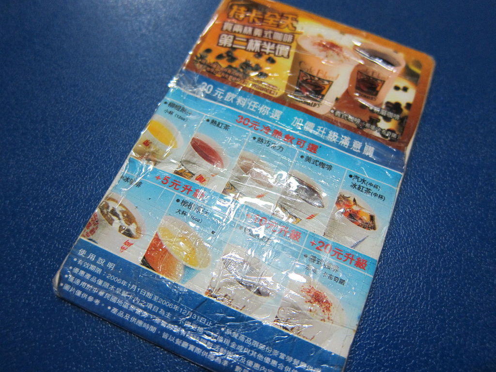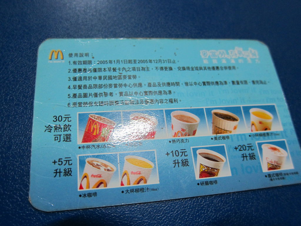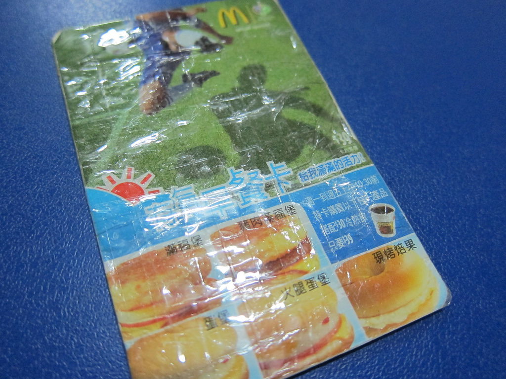 ▲2006年有氧早餐卡,掉到洗衣機裡面,幸好當時快換卡了,2006卡片也是買堡送飲料,還可以買義式咖啡第二杯半價,相當划算。
