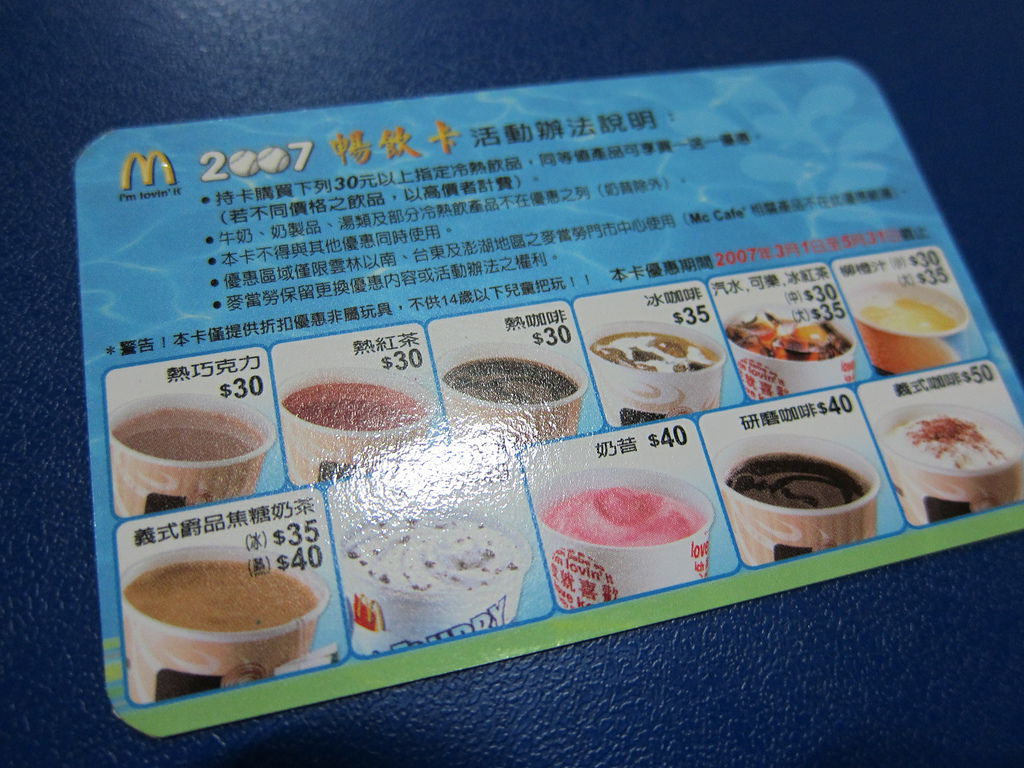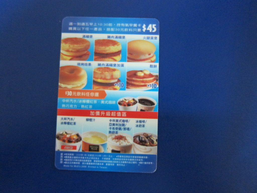 ▲2008年麥當勞推出自家咖啡品牌MC Cafe,有氧早餐卡我也挑了義式咖啡為封面的卡片,印象中這一年卡片圖案好像不只這款?