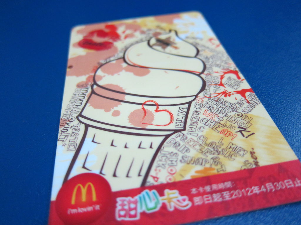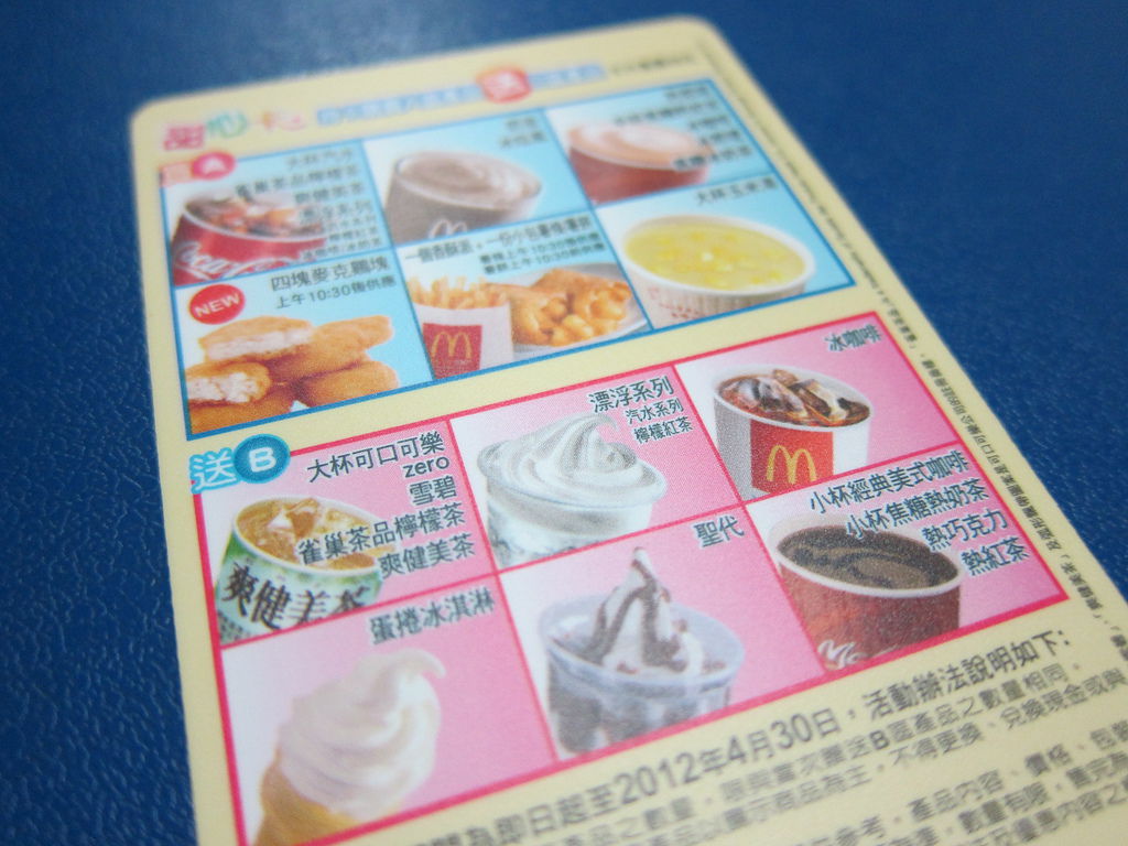 最近發現2012麥當勞甜心卡已經推出,立刻到麥當勞添購最新版的甜心卡一張,不知道從何時開始,每到四月就要到麥當勞搶購一張當年度甜心卡。回來整理才發現,我竟然有自2005開始的甜心卡,名稱為有氧早餐卡