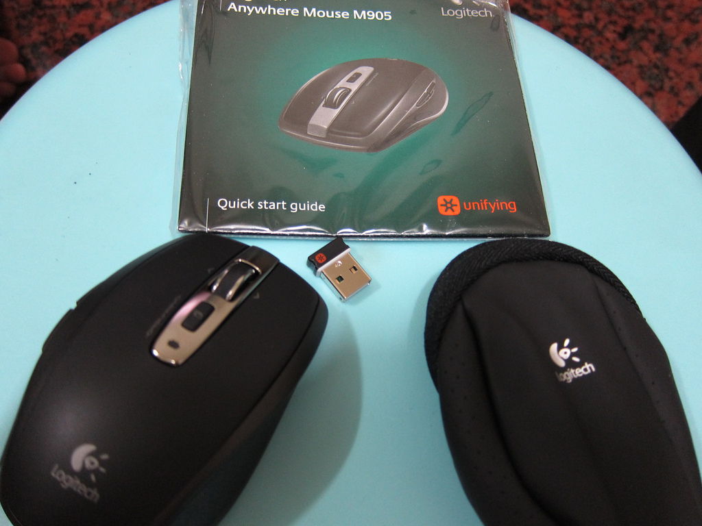 ▲這次的羅技滑鼠M905有袋子了,滑鼠專用的袋子,這讓使用筆電的玩家陷入瘋狂,不用再幫新滑鼠找不合身的衣服了,內容物有滑鼠、接收器、袋子與說明書。