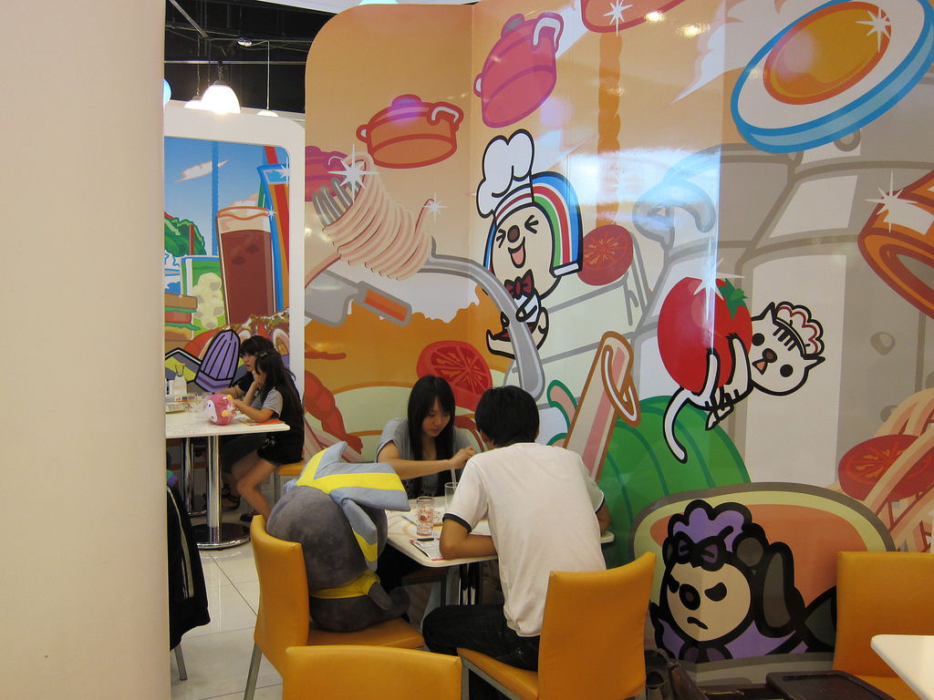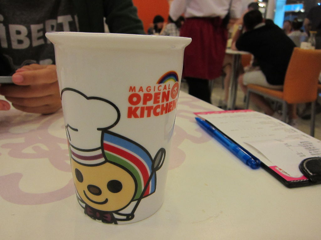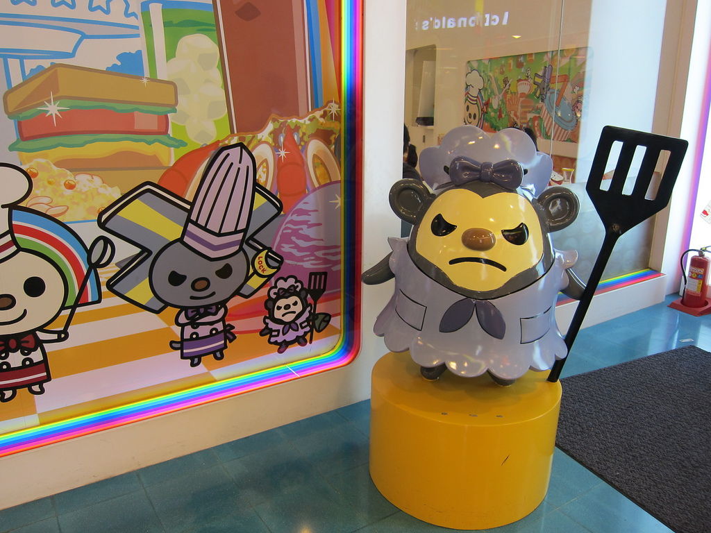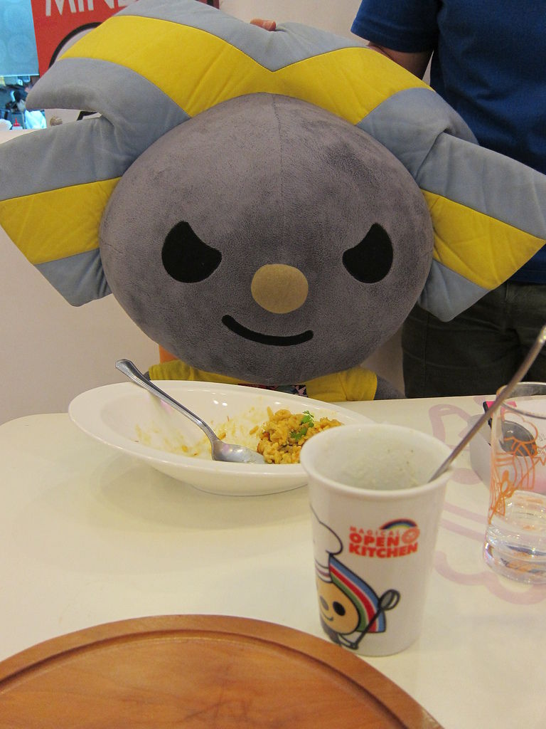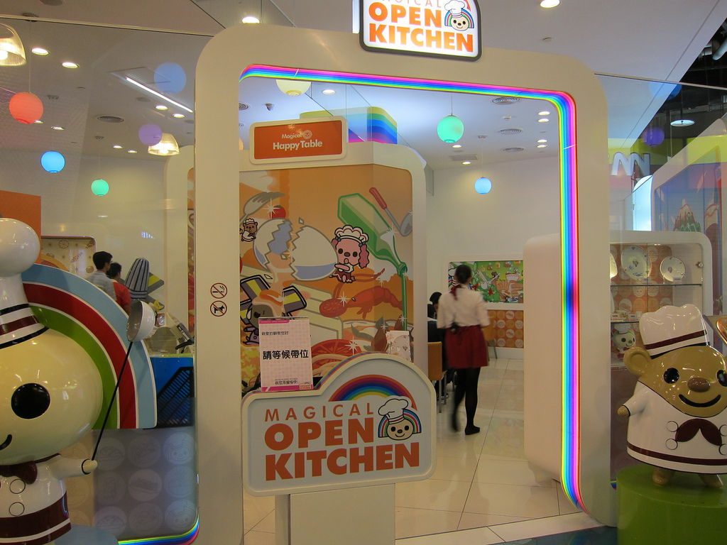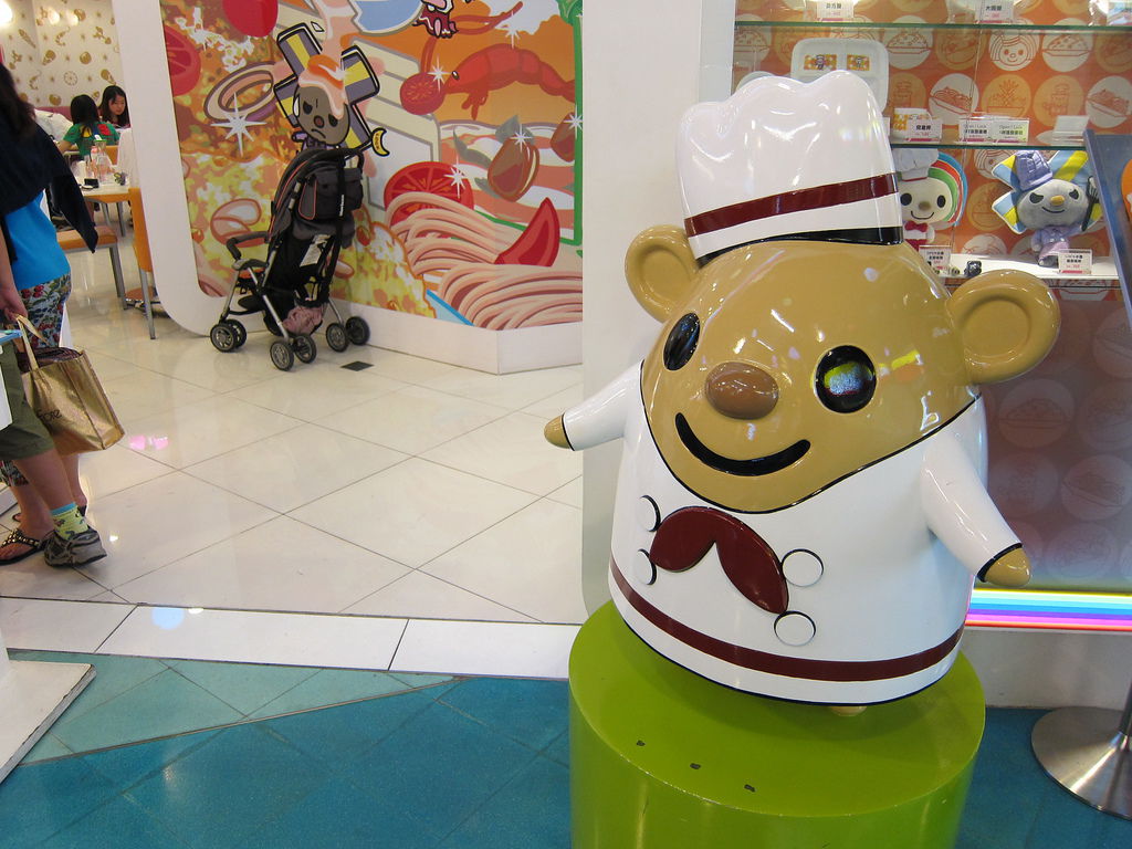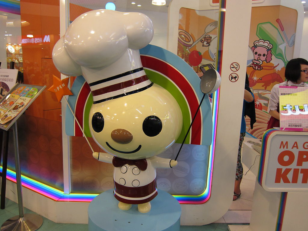 ▲在夢時代用餐區,有個相當可愛的主題餐廳,門口就可以看到穿著廚師裝的Open將在門口舞動湯勺,為了即將進門的客人準備大展身手,當然,還有他的助手小竹輪。