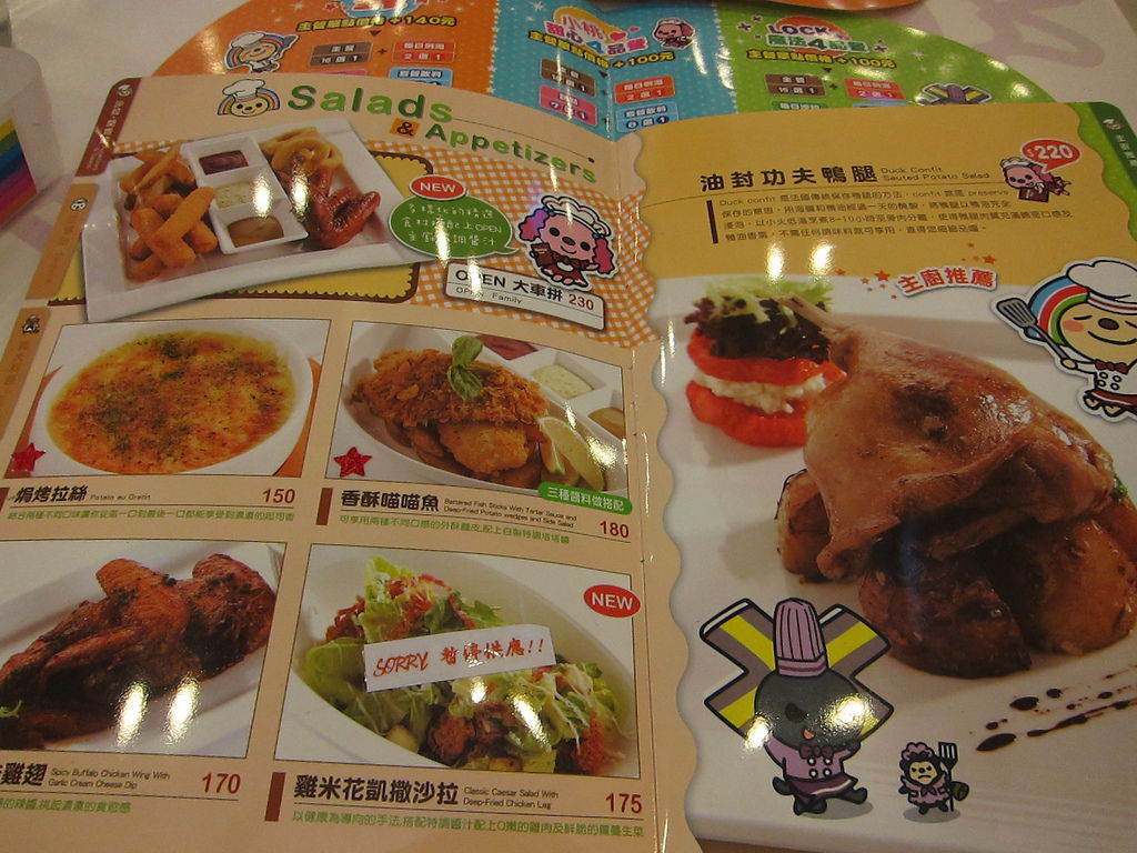 ▲相當豐富且色彩鮮艷的菜單,開始挑選你的晚餐吧,記住,先選你要open將、lock將還是小桃。再來細細挑選你的菜色。