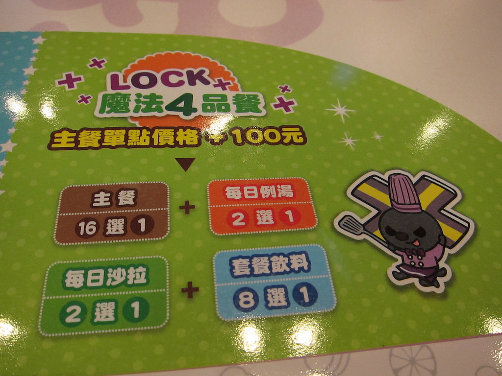 ▲第三種是Lock餐,在菜單中點選一個主餐,搭配其他附餐只要主餐+100元,與小桃相比就是甜點變成沙拉。