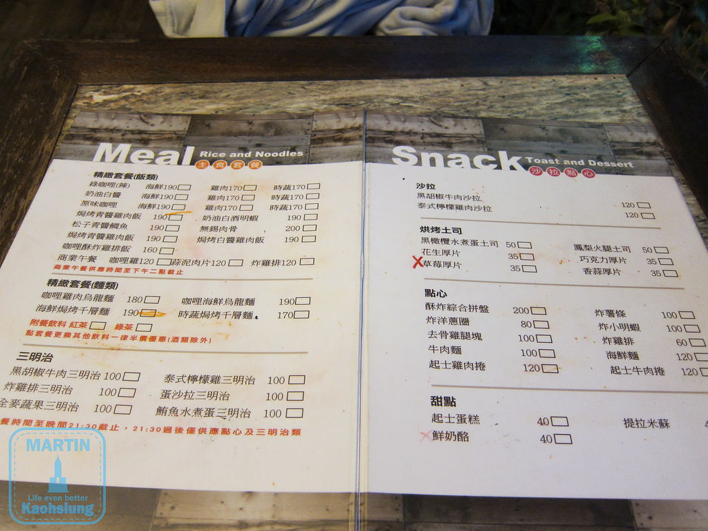 ▲MENU,從菜單可以知道,這邊營業時間就是早餐、晚餐、與睡覺前來可以這聊聊所使用。
