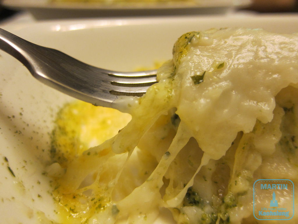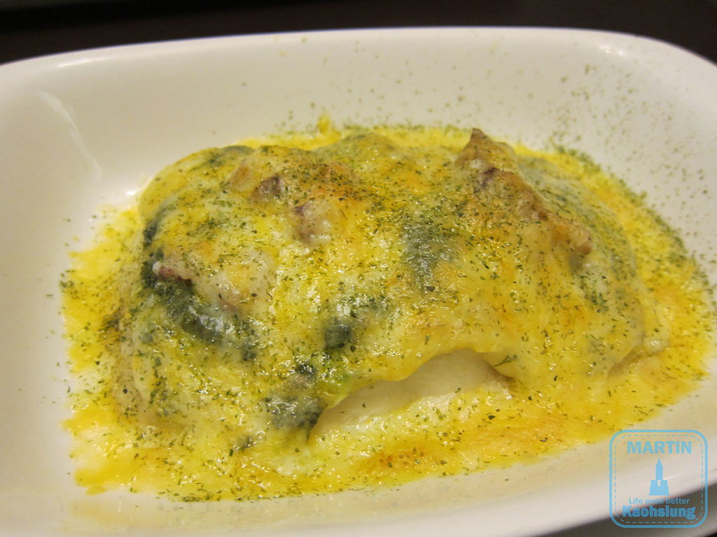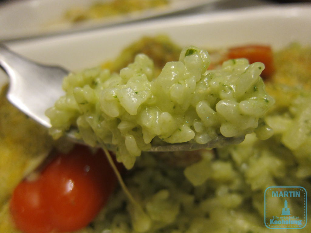 ▲焗烤青醬雞肉飯($190),這邊青醬與之前在艾莉斯的家有點不同,這邊的青醬所使用的料比較看不出來,而艾莉斯可以看到一塊一塊綠綠的配料,這邊青醬味道比較沒那麼濃厚,但也襯托出雞肉與起士的香氣,起士厚度十足,對於起士狂熱者而言應該會覺得不錯。