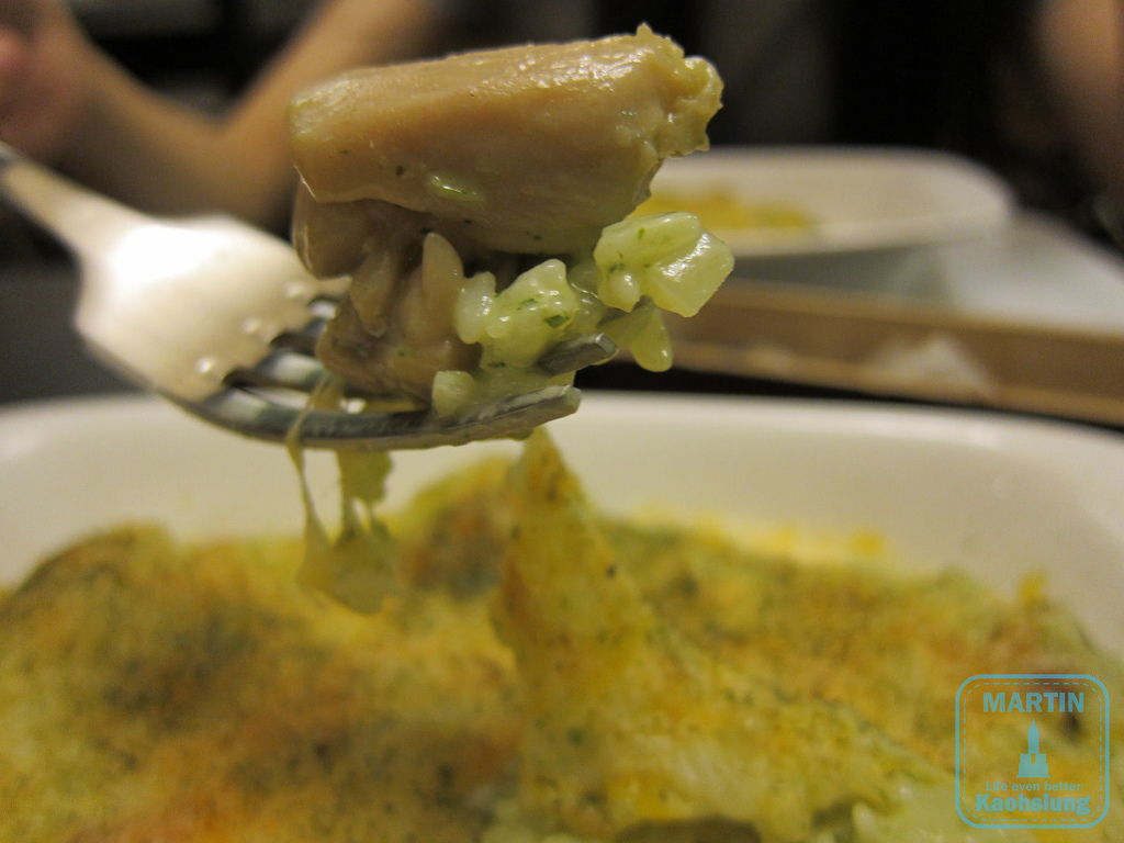 ▲海鮮焗烤千層麵($190),千層麵是馬汀首次體驗,口感滿像麵疙瘩,又比較薄,屬於有嚼勁的口感覆蓋上濃厚起士的感覺,所使用的是白醬淋在千層麵上,一片一片堆疊起來,對我而言還滿特殊的,這也是我在高雄美食記錄中的初體驗。