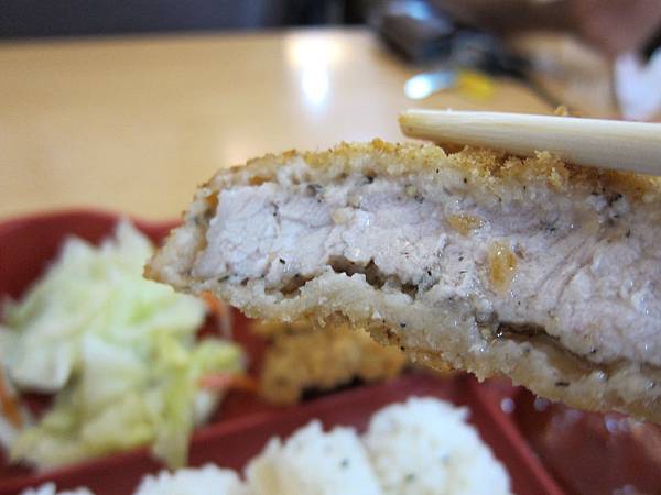 ▲炸豬排厚度很夠,嚼勁非常非常好,感覺就是真材實料,從外觀看以為會有炸到乾的錯覺,但其實只是炸外皮而已,裡面的肉汁很飽滿,外脆內多汁,相當好吃。