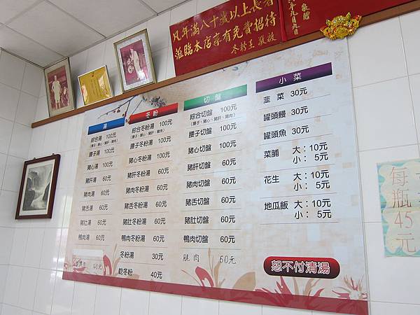 ▲菜單,以冬粉、豬肉及內臟為主的料理,一目了然。