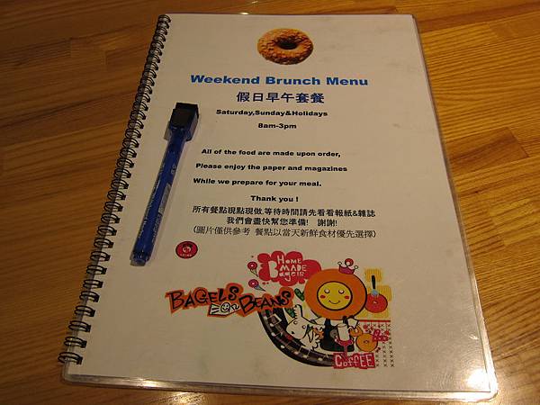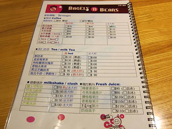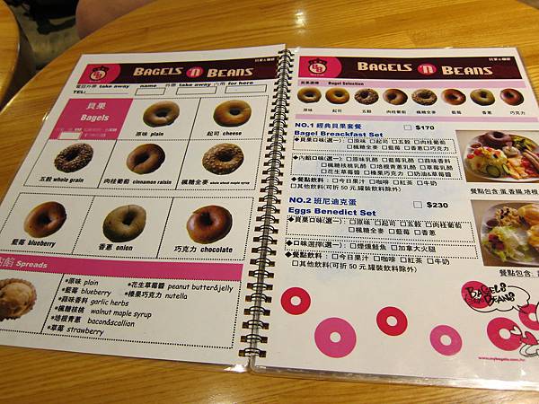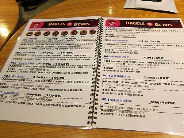▲菜單,上面有很多可口的照片,好想每個都點來試看看。除了貝果以外還有套餐可以選擇,如果點套餐最後一頁的飲料可以折扣,建議一定要點飲料來喝看看,非常推薦喔。