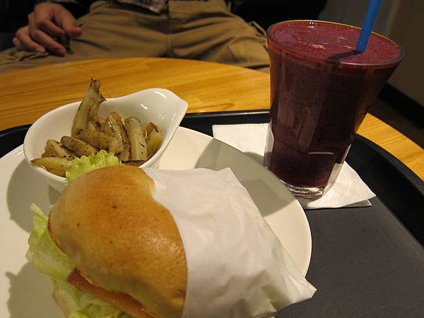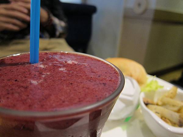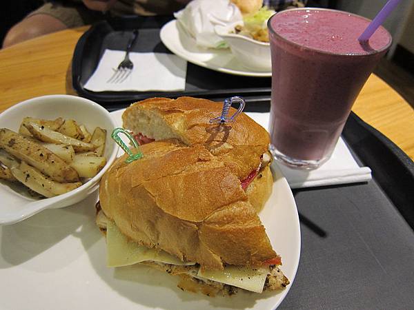 ▲鄉煎雞肉鄉村堡($200)+優格莓果汁($80),雞肉鄉村堡份量十足,麵包的外皮很有嚼勁,皮脆內軟,搭上充滿肉汁的煎肉口感非常的棒,加上內餡的青醬與番茄,清爽的口感讓人忘卻正在大口吃肉,非常好吃。