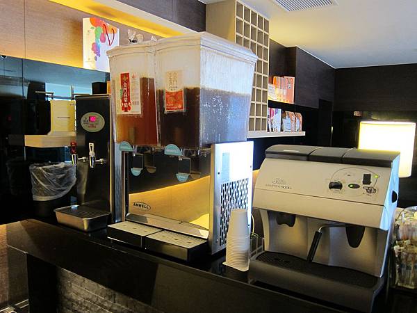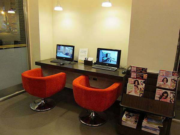 ▲在大廳另一側有電腦使用區與吧檯。吧檯旁的高粱醋超好喝啦,到這來別忘了喝一杯再進房喔。