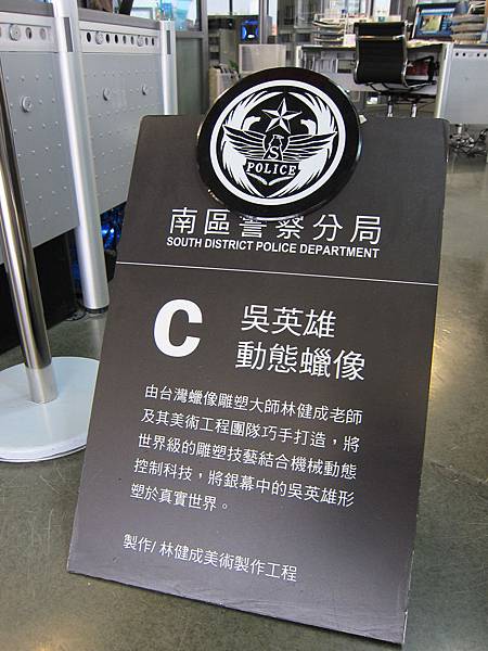 ▲痞子英雄南區分局共分為一、二兩樓,一樓無法拍照,是闖關遊戲的場地,二樓就是拍戲場景了,可以隨意拍照。一樓關卡分有狙擊訓練,就像是以前在外面玩VR戰警一樣,對著螢幕開槍,看能夠得到多少分數。刑事鑑定,這還滿特別的,對著觸控螢幕找尋蛛絲馬跡,看你能找到多少。潘姆,就是拆炸彈啦,很刺激的關卡,馬汀沒有解開....殘念。最後是交易箱,但這關卡到最後我們離開園區,導覽員還是沒有跟我們說交易箱的玩法.....從頭到尾就我們兩位遊客,一路玩得很HIGH,當天問他太多問題一時聊開就忘了這回事了吧,哈哈。
