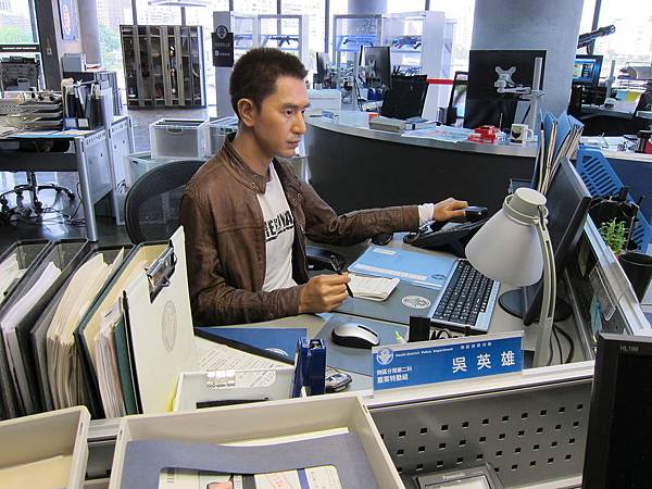 ▲活生生南區分局的攝影場景出現啦。一開始看到有人坐在裡面辦公別嚇一跳,吳警官可是很敬忠職守的,他...還會接電話。