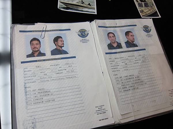 ▲最後來到會議室場景與拍照區,這裡擺設了許多的檔案照片,這裡的資料是可以翻閱的,坐著過過乾癮,翻一下,看看今天犯人的資料吧。