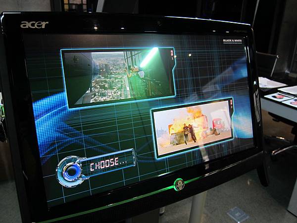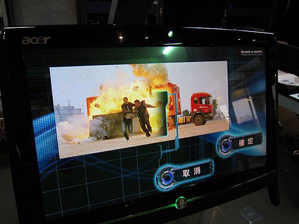 ▲這台高科技電腦與超大綠色背景,就是超好玩的合成場景機台,內建有兩張圖片,看你喜歡爆破場景還是動作片。