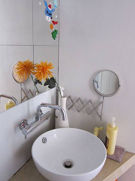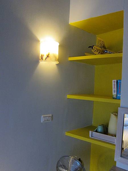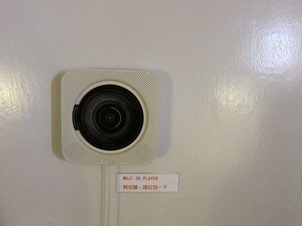 ▲橘月,橙。橙是一間雙人房,房裡以雞蛋花為主要布置內容,除了牆上的大刻劃以外,這邊也提供了MUJI的壁掛式CD音響,在橘月來張傑克強森是不是不錯阿。