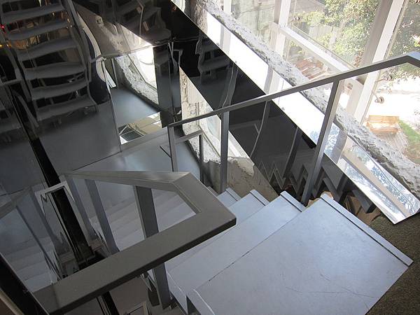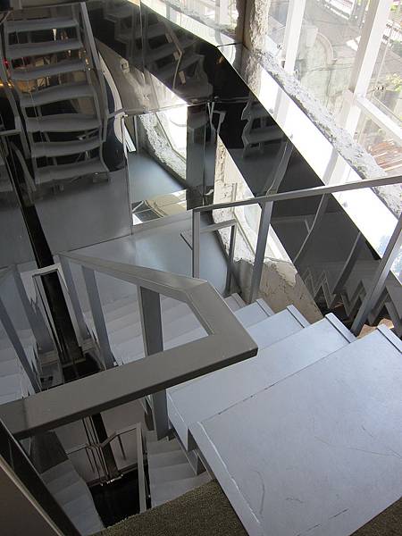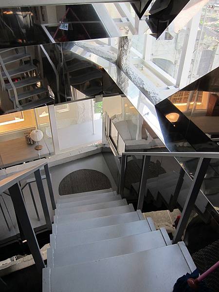 ▲從這個迷幻樓梯可以上樓,在這樓梯360度都可以反射,透過旁邊的開放大窗見到老榕樹正與你招手。