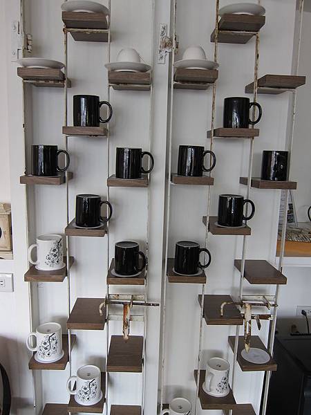 ▲咖啡吧台,在這馬克杯牆挑個杯子沖洗一下。