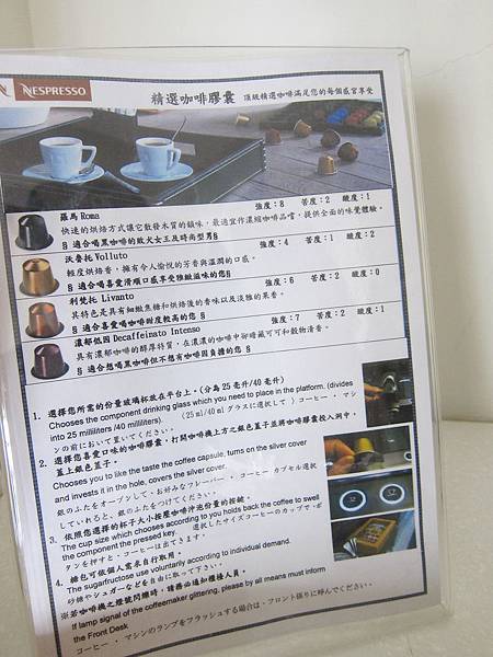 ▲某牌咖啡機曾經與這種膠囊咖啡機打過嘴砲,馬汀在此就不贅述了。我們還是泡咖啡好了,這裡有使用說明與口味,依造強度、苦度、酸度各有不同,大家各取所需吧。使用很簡單,馬克杯放置,把咖啡球放入機器,將蓋子闔上即可享受機器咖啡一杯。這種咖啡機人人都可在家擁有一台,點擊我觀看膠囊咖啡機價錢