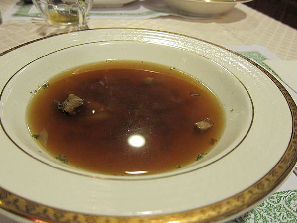 ▲牛肉清湯。牛肉末與蔬菜末煮成的湯品,清甜的口感令人印象深刻。