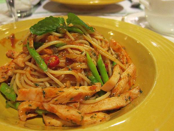 ▲煙燻雞胸搭蘆筍義大利麵($360)。用吸就能入口的麵條,完全不用太多的力氣,吸~~~就溜進嘴裡。雖然是雞胸肉卻完全不柴,加上清甜的蘆筍,均衡飲食囉。