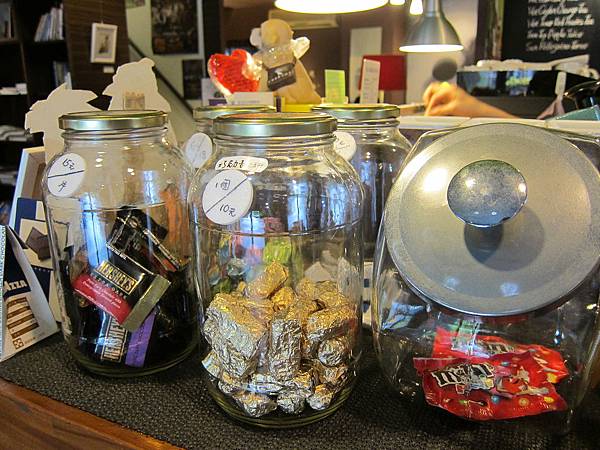 ▲櫃台上有很多有意思的甜點、餅乾,有標價錢的都可以在這點來享用,其他的裝飾品都是老闆的巧思,也可以待在吧台前方用餐,享受老闆的巧思。