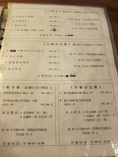 ▲簡單的A4封套菜單,雖然趕到簡易卻又相當清楚,餐點的時間、隨餐附贈的飲品上面都有詳細記載,點餐不複雜。