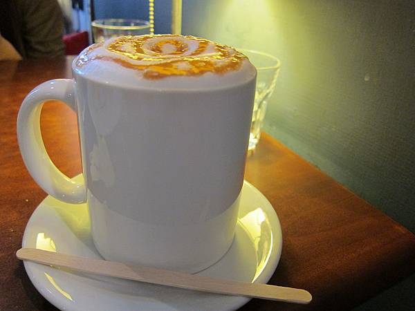 ▲焦糖瑪奇朵($110),焦糖瑪奇朵是附餐飲料,繞著圈圈的焦糖醬,像是平日的上班族一直在工作轉不出去,在咖啡鳥把它喝光吧!雖然焦糖很厚一層,卻不影響咖啡的香氣,焦糖的味道很香但不會過甜,反而將咖啡提味不少,搭配恰到好處。