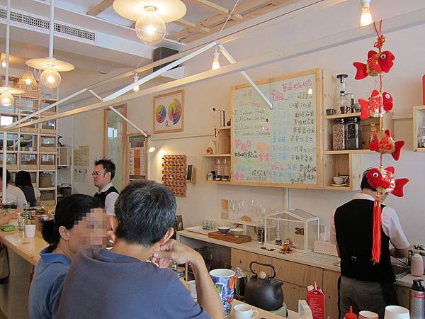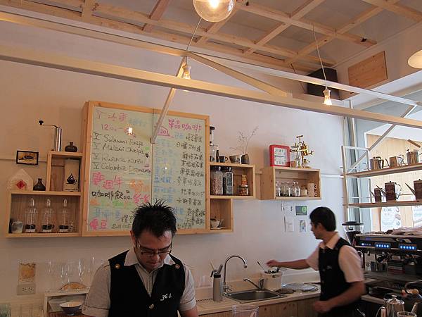 ▲1樓的用餐環境和吧檯,後面的白板上寫著各式各樣的單品名稱,看了真是眼花撩亂,就算看懂中文字也不知道他的意思在哪,真是書到用時方恨少(咦?)。