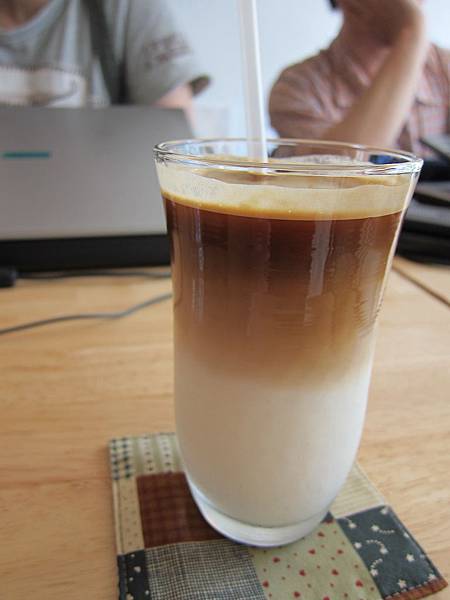 ▲焦糖拿鐵($90),層次分明的焦糖拿鐵,飲用前要攪拌,才能將牛奶、咖啡、焦糖充分混合。