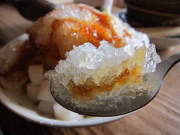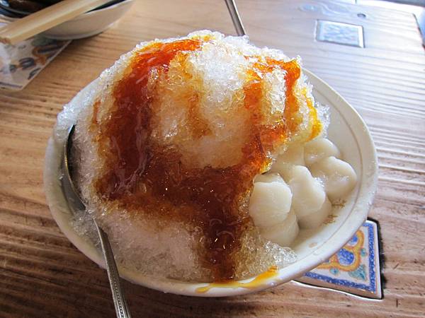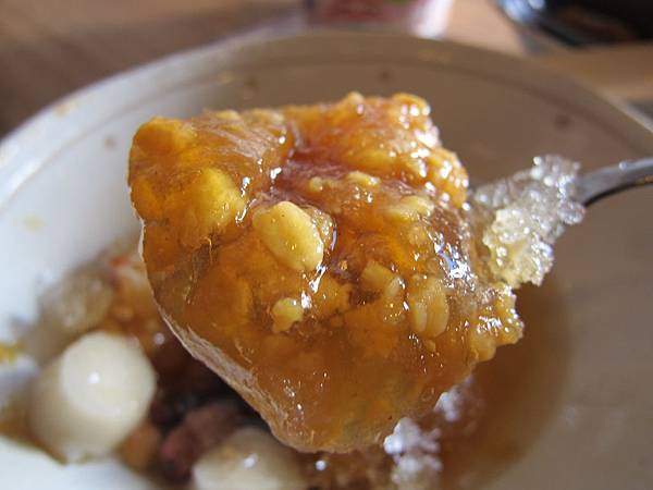▲綜合湯圓冷熱冰($50)。董娘千交代萬交代,焦糖一定要和剉冰一起吃,焦糖非常香,加剉冰會像水晶一樣剔透,裡頭湯圓和配料都是熱的,也就是俗稱的冷熱冰,夏日午後一定要來一碗。