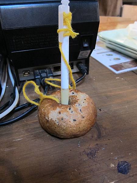▲沒有位置坐就沒鹹派吃,沒有咖啡喝,沒有南瓜司康....通通沒有了,只能點貝果在外面坐著吃了。以後一定要提早一天訂位才有東西吃啦。