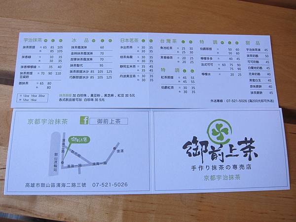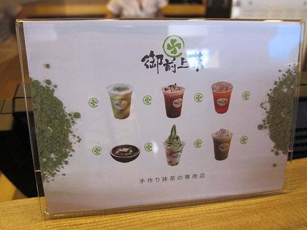 ▲從名片上的菜單可以知道,這邊除了抹茶飲品與冰品以外,還有各式甜品與特調,當天看到冰箱內有三個抹茶奶酪,滑嫩可口的樣子,但我們是為了霜淇淋來的,心裡os:不能被冰箱吸引~不能被冰箱吸引~不能被冰箱吸引~不能被冰箱吸引~