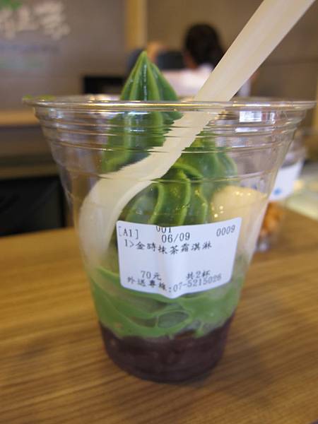 ▲金石抹茶霜淇淋($70)。綿密的紅豆打底,上面是好吃的不得了的抹茶霜淇淋,一杯70元可以換取抹茶香與鼓山渡輪站前的涼快饗宴。