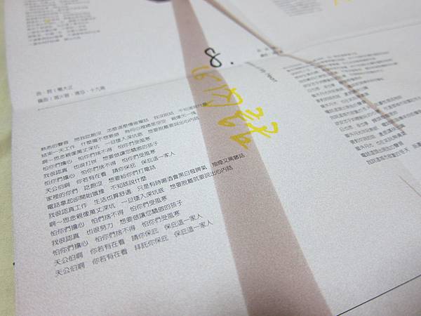 ▲折起來的歌詞,附有感謝名單,大家可以看看滅火器的唱片感謝了多少人阿~~~