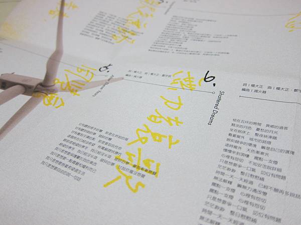 ▲歌詞,不是以歌無本的樣貌呈現,但依舊呈現暗色系的風格,以亮色的黃色當作大標題,大大的在會青春也很有氣勢。