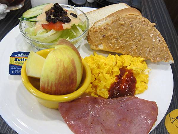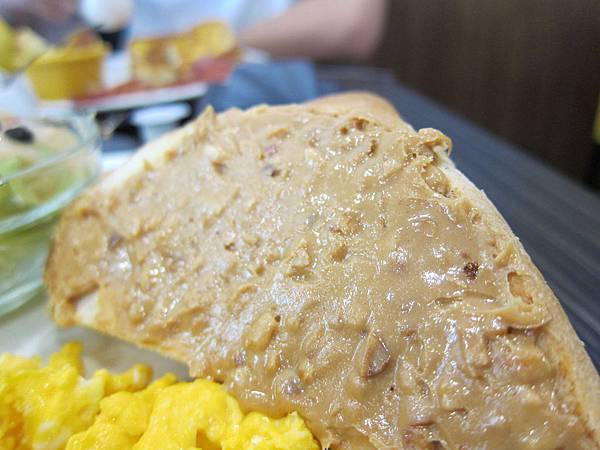 ▲鯊魚有氧早餐($120)。這裡餐點都大同小異,只是這有養早餐的花生醬也塗太多了,可能新開幕比較生疏吧!