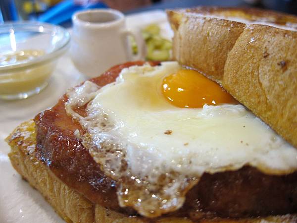 ▲羅浮肉蛋布丁吐司太陽蛋($160)。最棒的就這啦,太陽蛋直接吞下去太爽了,加上厚厚的土司,很過癮喔。