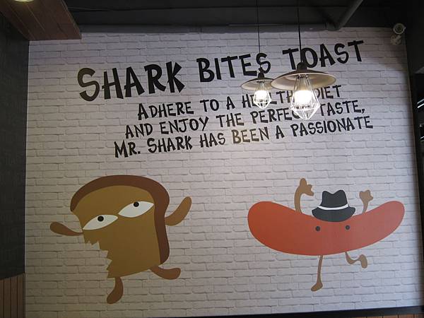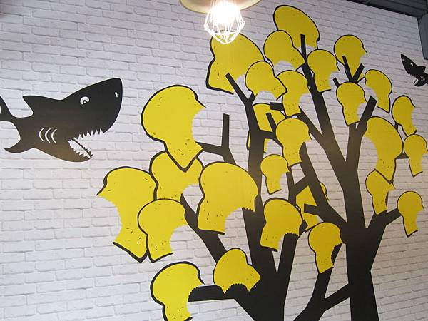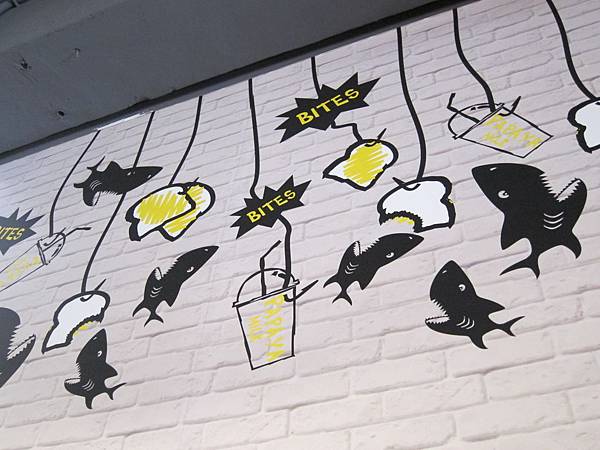 ▲牆上可愛的畫風也是店家招牌之一,清楚知道沙魚咬土司。