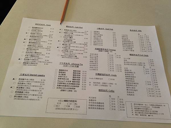 ▲菜單,分成帕尼尼、丹麥系列為主的餐點,另有輕食與飲品,且皆附有基本飲料,要特殊飲品可要加價囉。