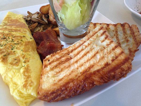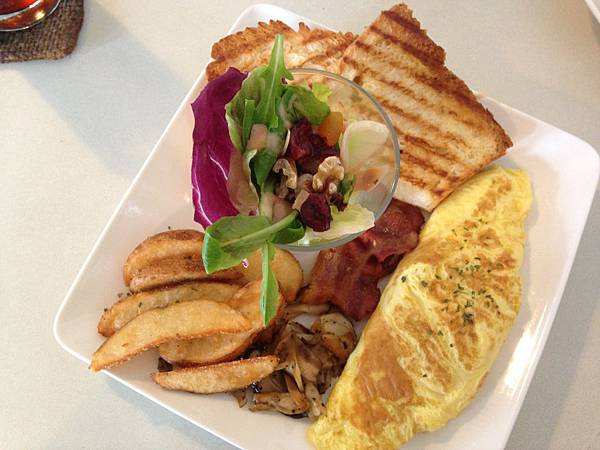 ▲Freeway經典早午餐($200)。以麵包、培根、歐姆蛋、沙拉、薯條組合而成的經典早午餐可是店家招牌,滑嫩歐姆蛋配著麵包一口口,在假日補充活力充沛的量能。