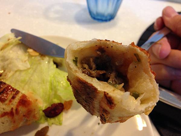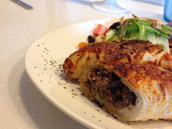 ▲牛肉起士捲($170)。利用手燉麵皮做成的厚實外皮搭上牛肉、特製白醬、起士絲、沙拉,形成超有飽足感的牛肉捲。